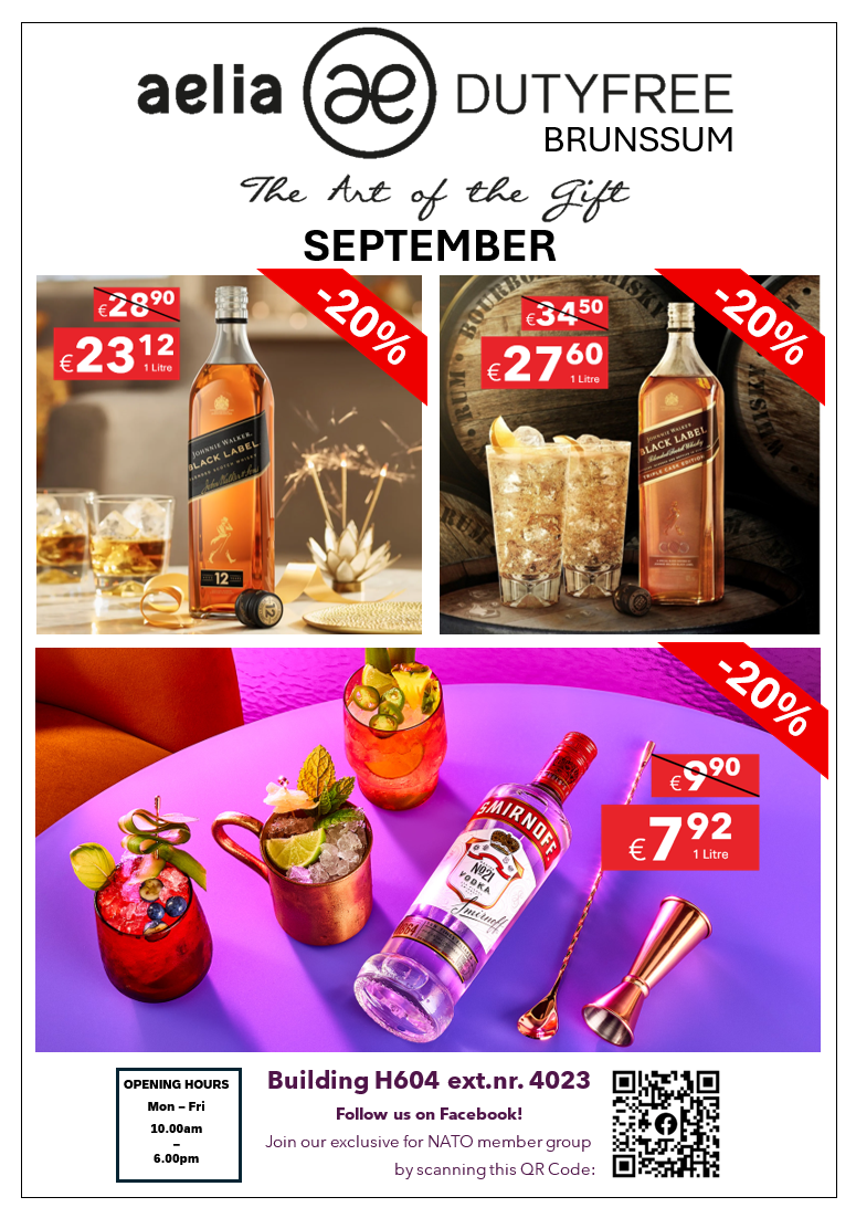 Join the private Facebook group “Aelia Duty Free Brunssum” to keep up with the latest deals and promotions!