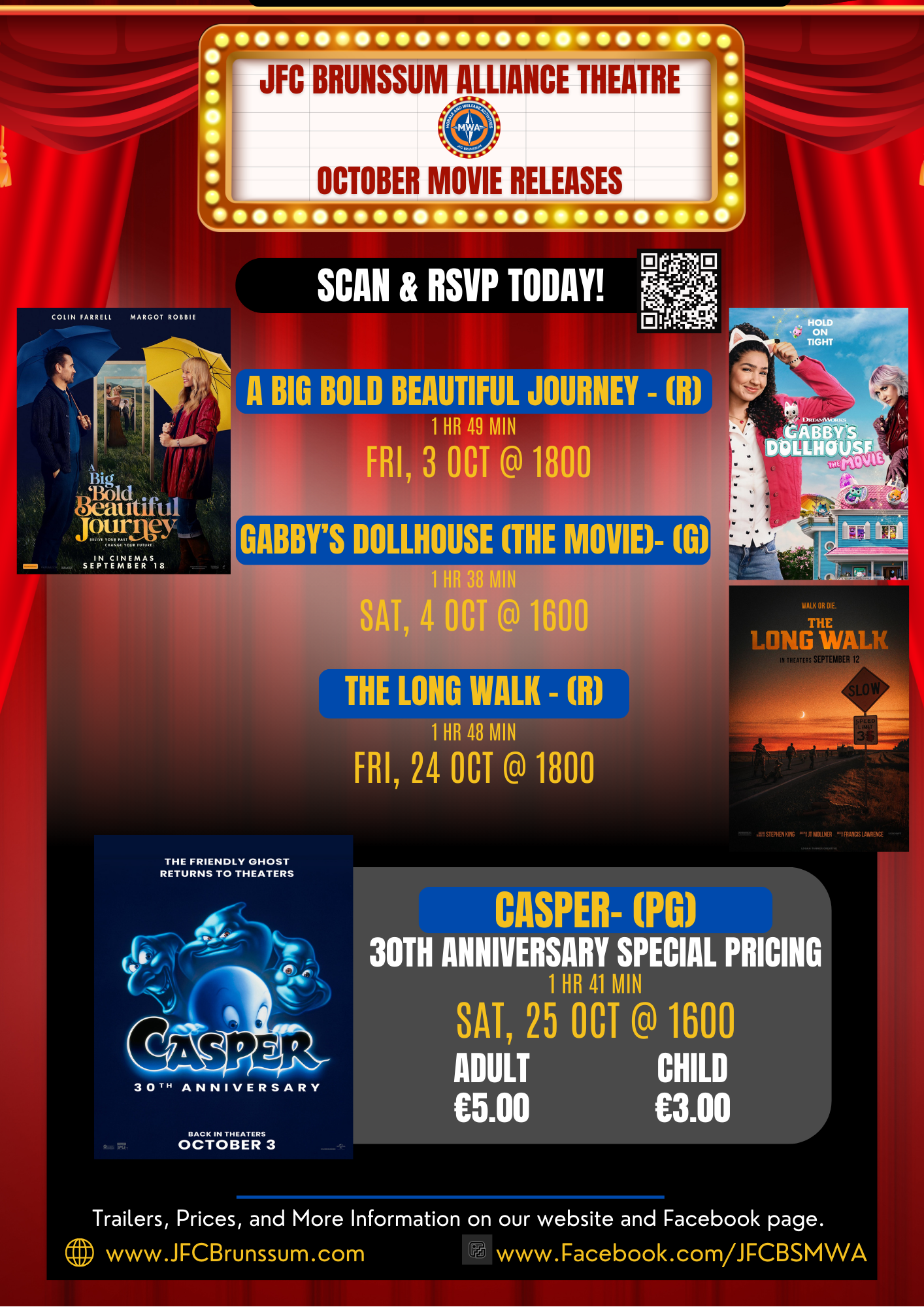 Online bookings close 24 hours before the showing. If the showing is cancelled, a notice will be posted here and on our Facebook page. Otherwise, the movie is still scheduled, and tickets can be purchased at the door.